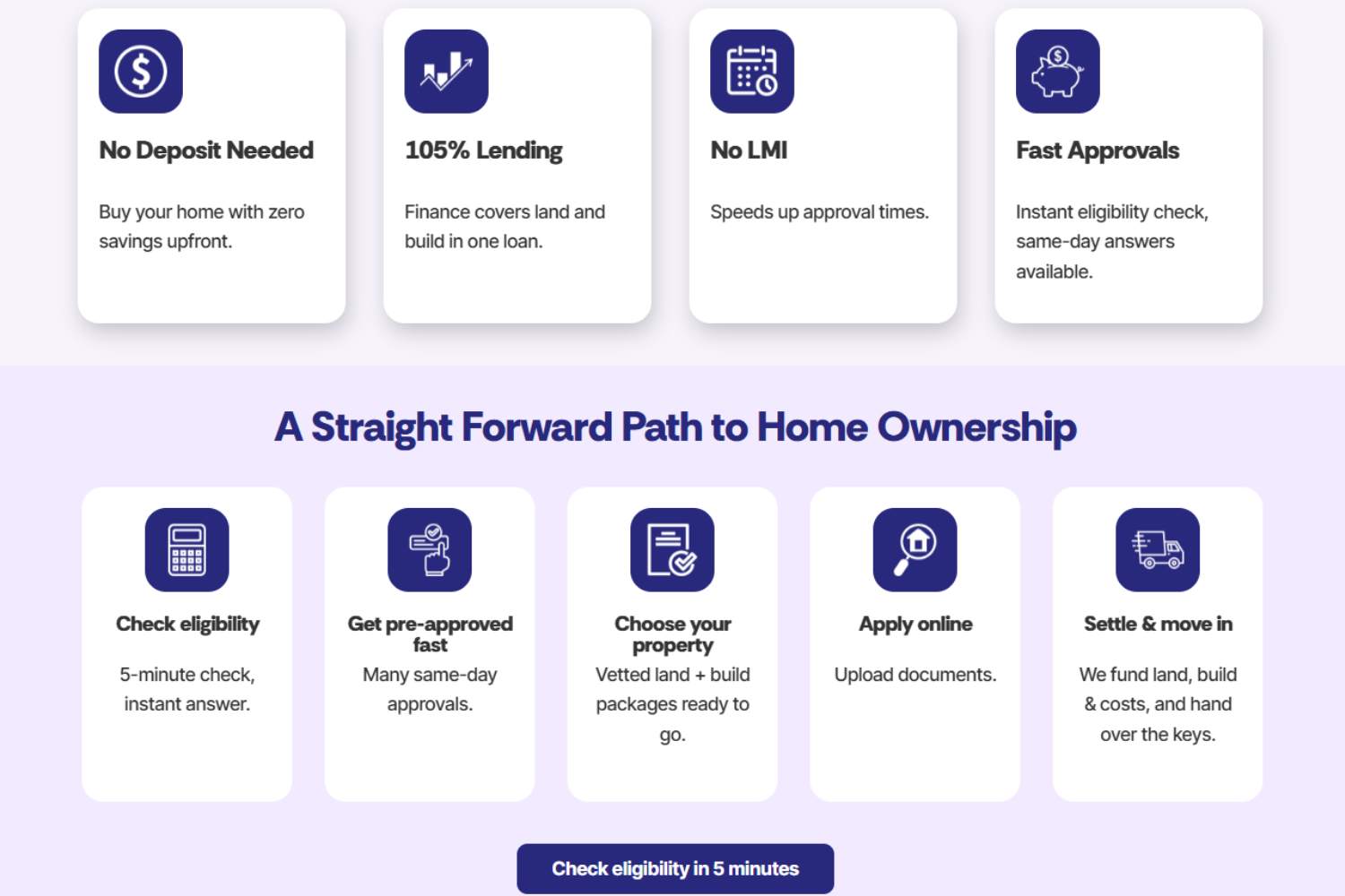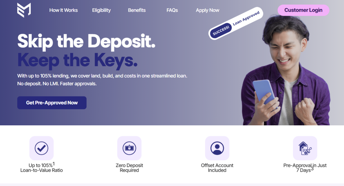 A landing page for their 105% LVR home loan